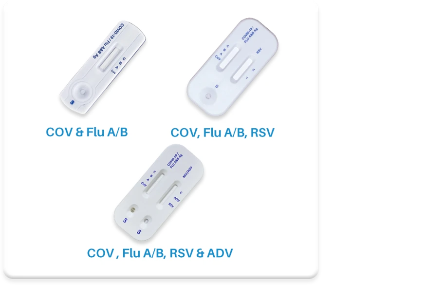 Las Pruebas Rápidas Respiratorias son para el diagnóstico rápido in vitro de COVID-19, Influenza A&B, Virus Respiratorio y Antígeno de Adenovirus.